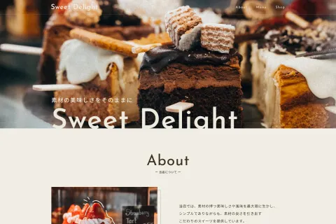 概要: 仮想のスイーツショップの公式サイトをイメージして作成したサンプルサイトです。